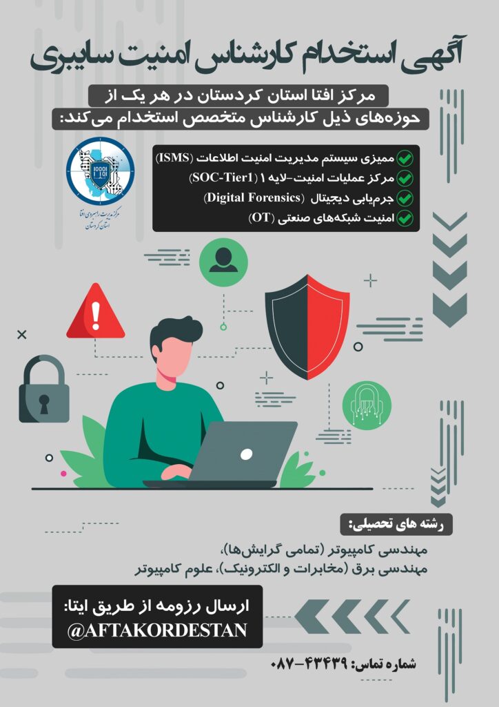 صفحه اصلی / اخبار و اطلاعیهها / آگهی استخدام کارشناس امنیت سایبری اخبار فاوا, اخبار و اطلاعیهها لینک کوتاه این صفحه: https://kurdmedu.ir/?p=2067